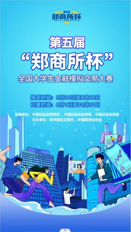 “郑商所杯” 全国大学生金融模拟交易大赛是在中国证券监督管理委员会期货部、中国证券监督管理委员会投资者保护局及中国证券监督管理委员会团委指导下,由郑州商品交易所联合中国期货业协会举办。截止2021年末,该项赛事已经成功举办四届,累计参赛学生十万余人。本届大赛报名已于5月31日正式开启,欢迎各位学子积极报名参赛,赛事具体介绍请参看附件。广大师生可以扫码加入“av在线看