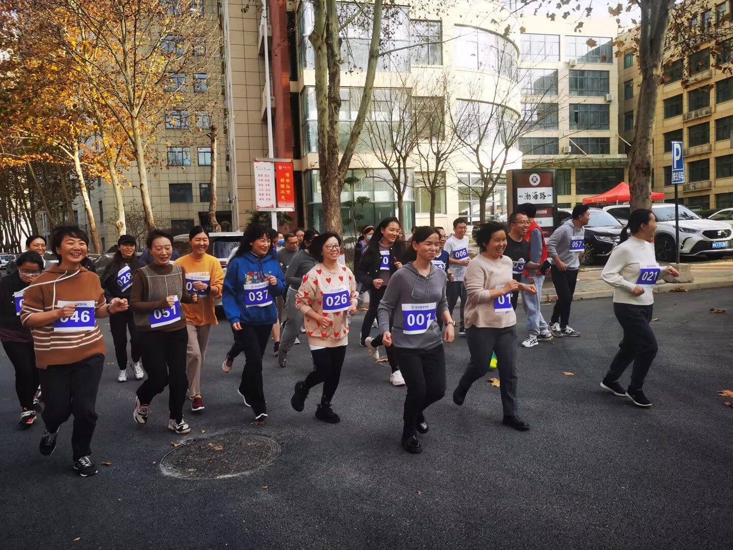 长跑起点从3号组团楼北门前开始,沿渤海路、沿湖路、经工业训练中心、11号学生宿舍楼和新苑餐厅等地到达终点,全程约2.5公里。全体参赛人员精神饱满、步伐矫健,在享受健康长跑的同时,更收获了满满的参与感和自我挑战的成就感。经过激烈角逐,苏明、王庆丰和王小黎三位老师分别获得前三名。