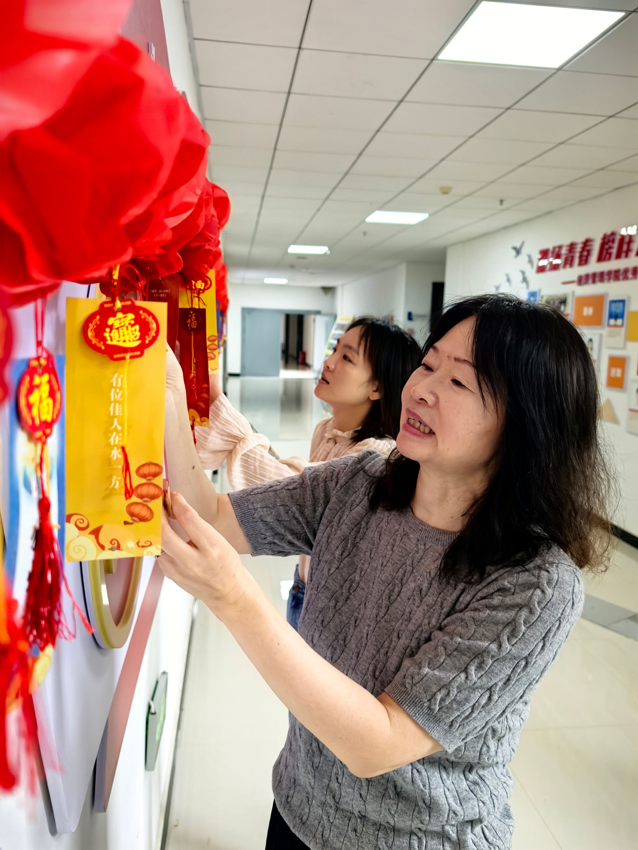 月圆人团圆,灯谜乐翻天。猜灯谜区挂满了红色的灯笼,每个灯笼下都有一条精心准备的灯谜,教职工们或凝神思考,或互相讨论,猜出了很多有意思的灯谜,现场洋溢着欢声笑语。