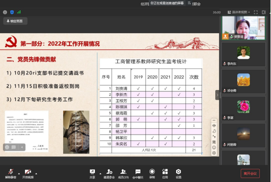 召开2022年度党支部书记线上述职评议会议。学院党委领导班子成员、各党支部书记参加会议,会议由党委书记李向东主持。