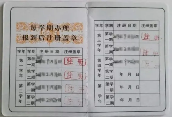 学生证注册盖章页照片示例