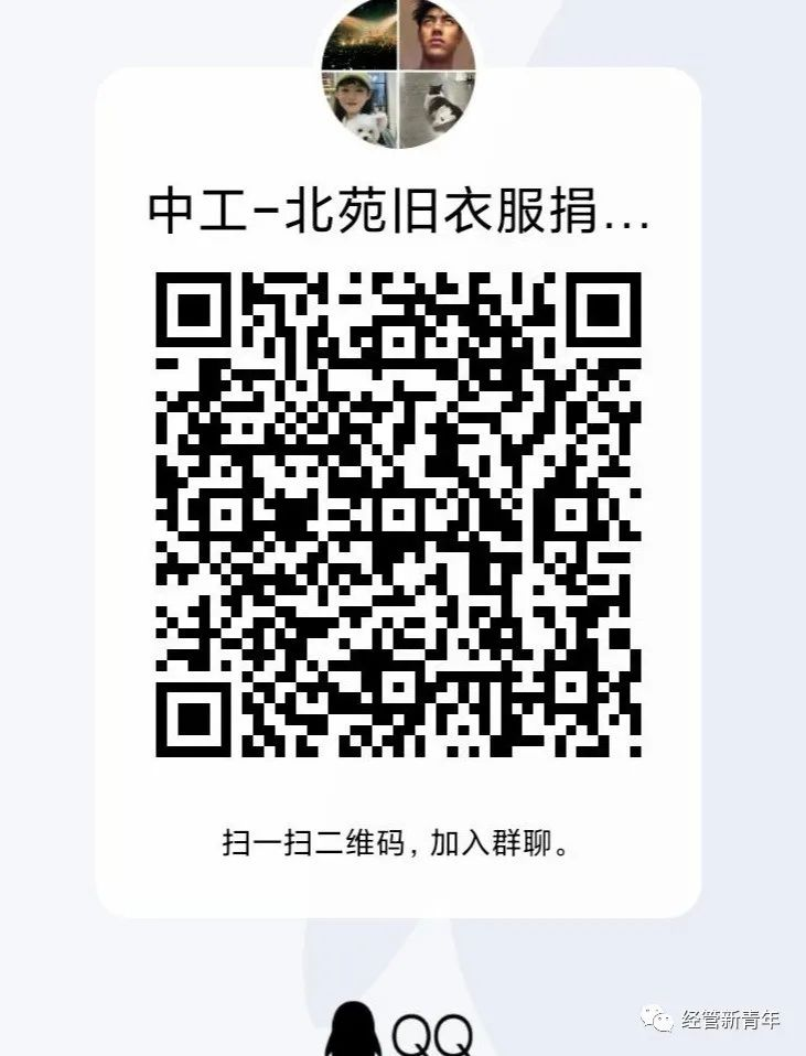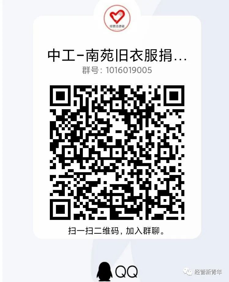5.注意事项:捐赠者需要提前整理好所要捐赠的衣物,有问题的同学可以扫描下方二维码加入我们的旧衣捐赠活动的沟通群。