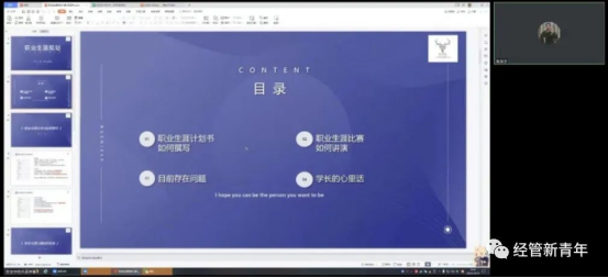 在腾讯会议平台举办“雅迪杯”大学生职业生涯规划大赛赛前培训会。邀请18级市场营销专业毕业生张宝宇为av在线看
