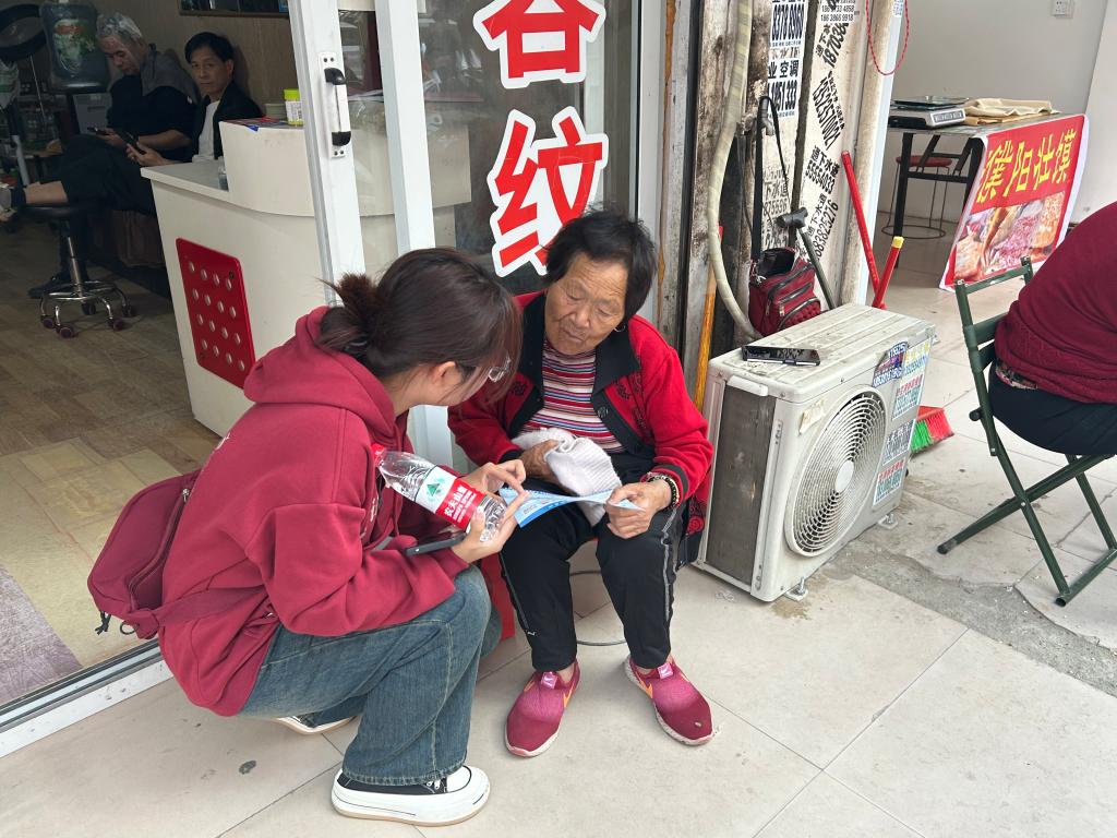 志愿者走进社区,为老人们介绍各种诈骗手段及真实案例,向老人们讲解防诈骗知识,协助老人们下载国家反诈中心APP,增强对于防诈骗方面的认知。