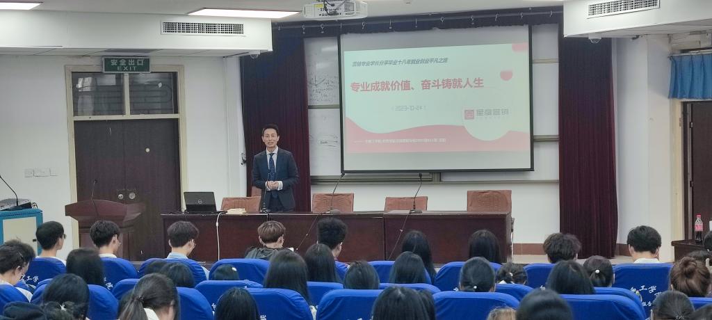 “听学长分享就业创业的‘平凡之路’”讲座在龙湖校区四号楼311举行。郑州星彦营销战略咨询集团创始人雷阳、经理鹿正阳应邀开展讲座,av在线看
