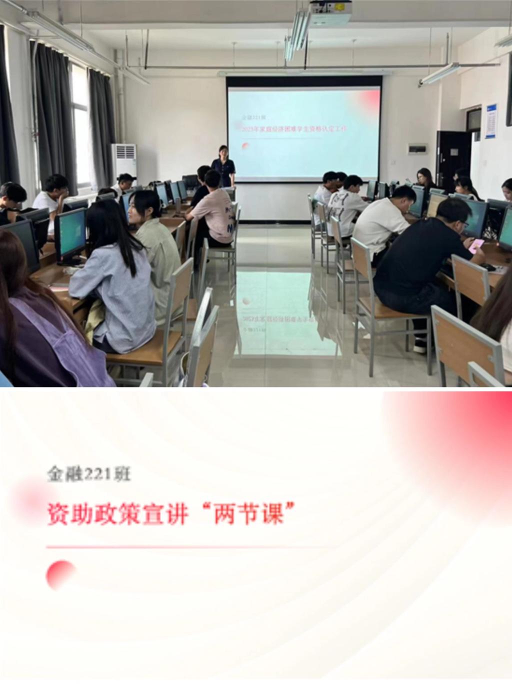 各班班主任老师开展了关于2023年秋季学期学生资助政策“两节课”主题宣讲活动,深度对国家奖助学金、助学贷款、兵役资助、勤工助学等资助工作做出了详细认真的讲解。