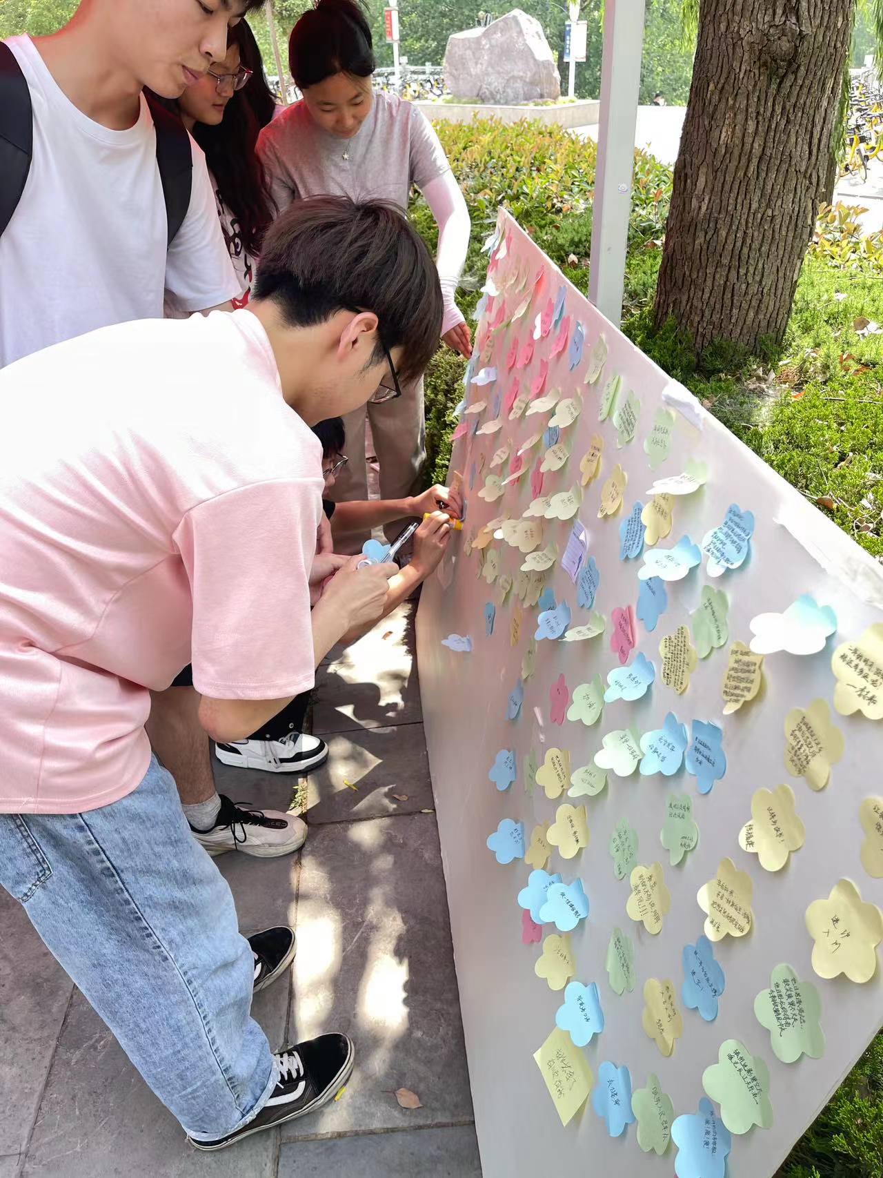 活动现场热闹非凡,学生们纷纷聚集在摆放着丰富书写和绘画工具的桌前。他们或拿起画笔,挥洒色彩,描绘出心中对梦想的向往;或拿起笔,在纸上写下鼓舞人心的文字,与同学们分享自己的励志故事。一幅幅生动的画面、一段段感人的文字,展现了学生们对未来的无限憧憬和追求。除了传统的书写和绘画形式,本次活动还特别设置了“便利贴分享区”。学生们纷纷在便利贴上写下自己的励志故事、人生感悟等,然后将其粘贴在文化板上。这些便利贴不仅记录了学生们的心路历程,也成为了传递正能量的桥梁。路过的同学们纷纷驻足观看,互相交流心得,现场气氛温馨而热烈。此外,本次活动还推出了独具特色的“时间邮局”环节。参与的学生们可以在现场书写一封信,寄给一年后的自己。这些信件由组织者妥善保存,一年后将如数奉还。这种独特的方式让学生们有机会在时间的沉淀中重新审视自己的成长和变化,为自己的未来加油打气。
