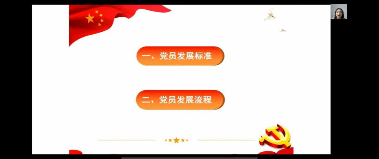 郭姗和段瑞婕分别对团员发展流程、二课成绩单制度、文明宿舍建设相关工作及党员发展标准和流程进行了讲解。鼓励学生积极向团组织和党组织靠拢,用实际行动践行自己的信仰,为实现中华民族伟大复兴的中国梦贡献自己的力量。