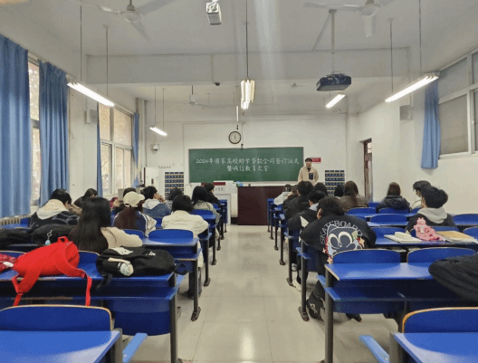 在二号组团楼111教室召开2024年国家高校助学贷款合同签订仪式暨诚信教育大会。本次会议由张志远老师主持,申请国家高校助学贷款的各年级学生代表参加。