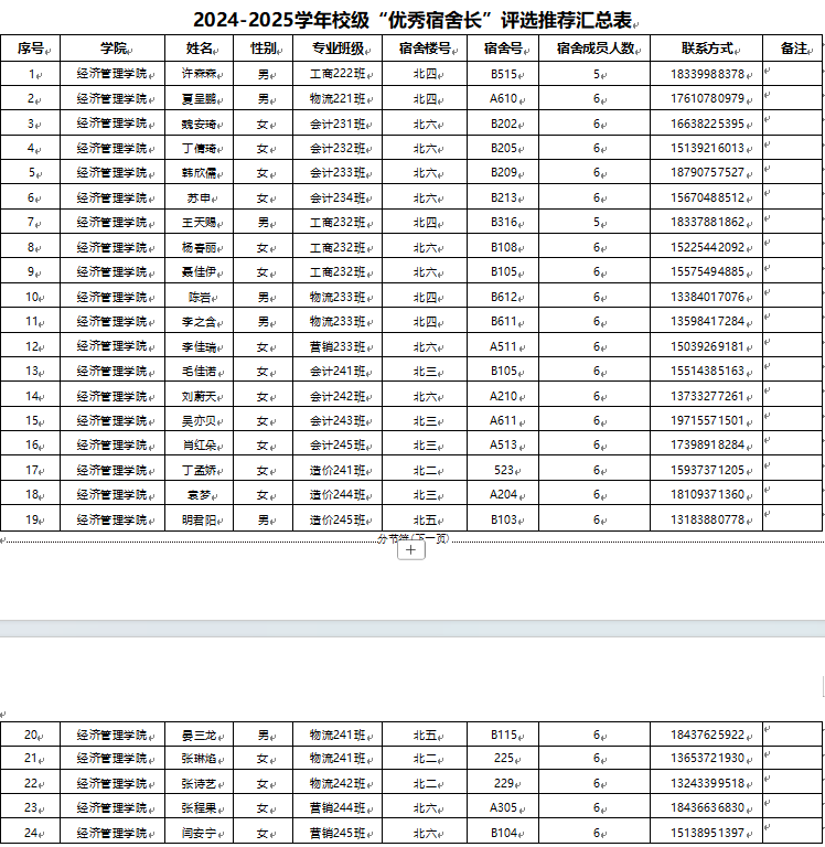 为进一步营造文明、和谐、安全的宿舍环境,发挥宿舍长在学生良好卫生习惯养成和健康生活方式培养中的模范引领作用,经学生本人申请、学院评审,现将av在线看 “优秀宿舍长”评选结果进行公示,公示时间为2025年6月6日---2025年6月10日,如有异议请在公示期间反馈。反馈电话:0371-62506060。