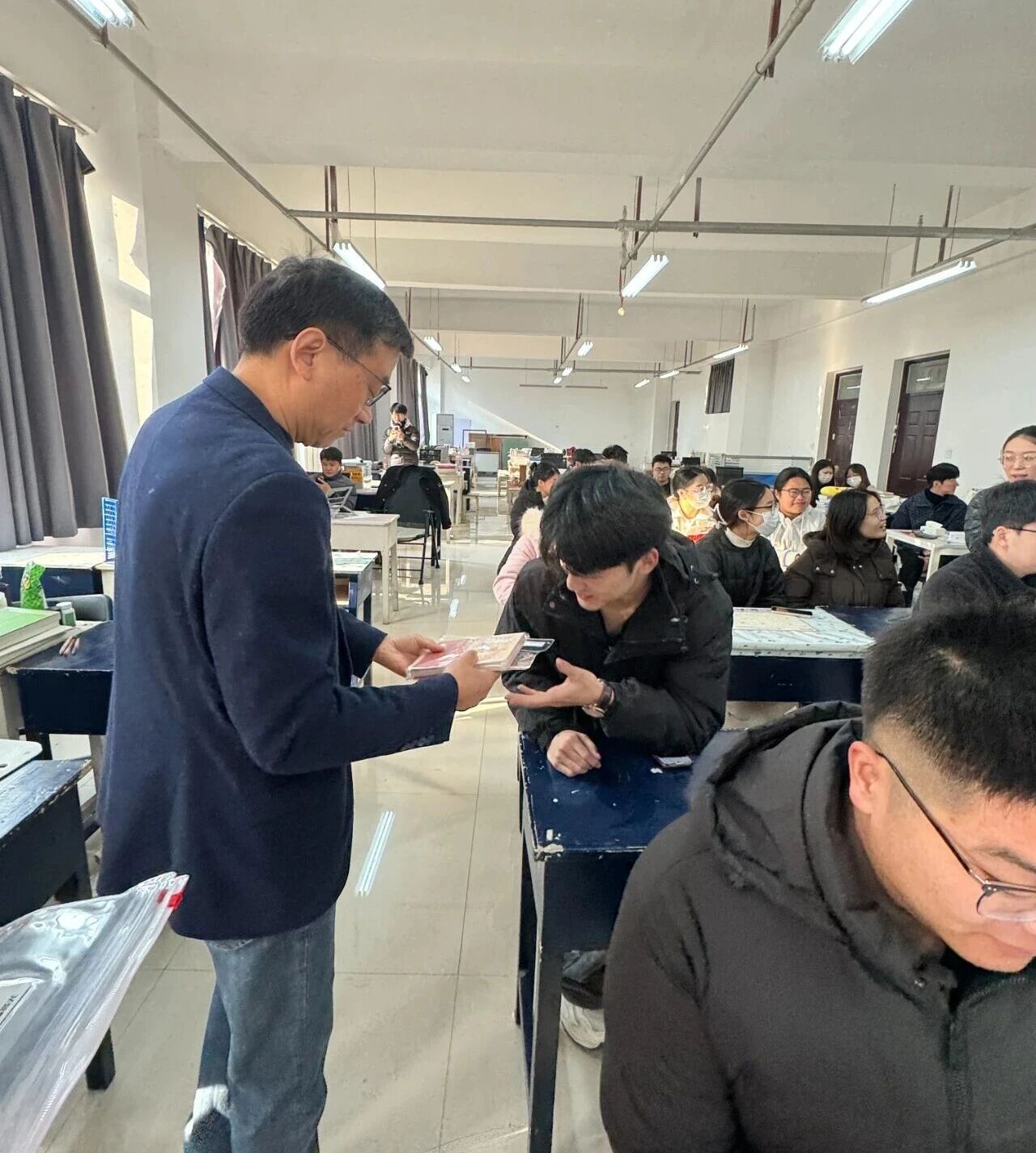 活动现场,学院精心准备了实用文具与寓意深远的“加油包”。一份份满载祝福的礼品,传递着学院对考研学子的深切关怀。在发放环节,老师们亲手送上礼品,与同学们亲切交流,叮嘱大家劳逸结合、调整心态。这份温暖如冬日暖阳,驱散了备考的疲惫,为冲刺中的学子注入了信心与力量。
