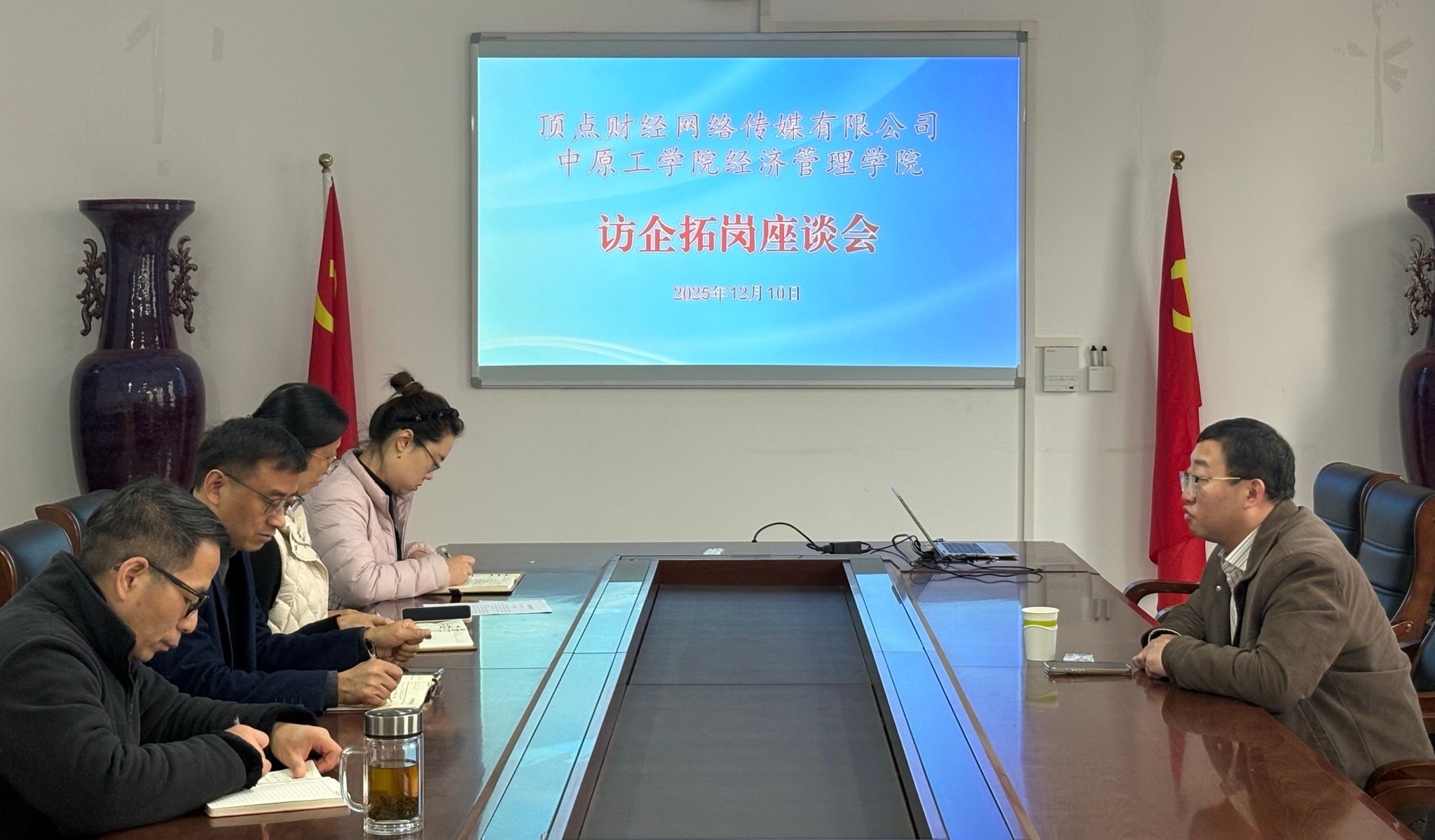 与顶点财经网络传媒有限公司在3号组团楼A306会议室开展访企拓岗和校企合作洽谈会。顶点财经网络传媒有限公司三分公司总经理谢林慧,学院党委书记李向东、党委副书记王琳、金融学系主任刘鹏、学工办副主任陈金参加。